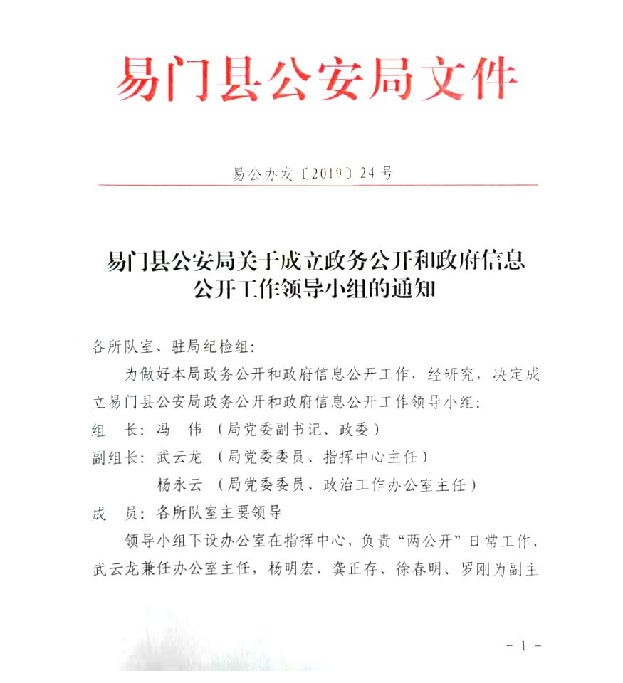 易门县公安局关于成立政务公开和政府信息公开工作领导小组的通知