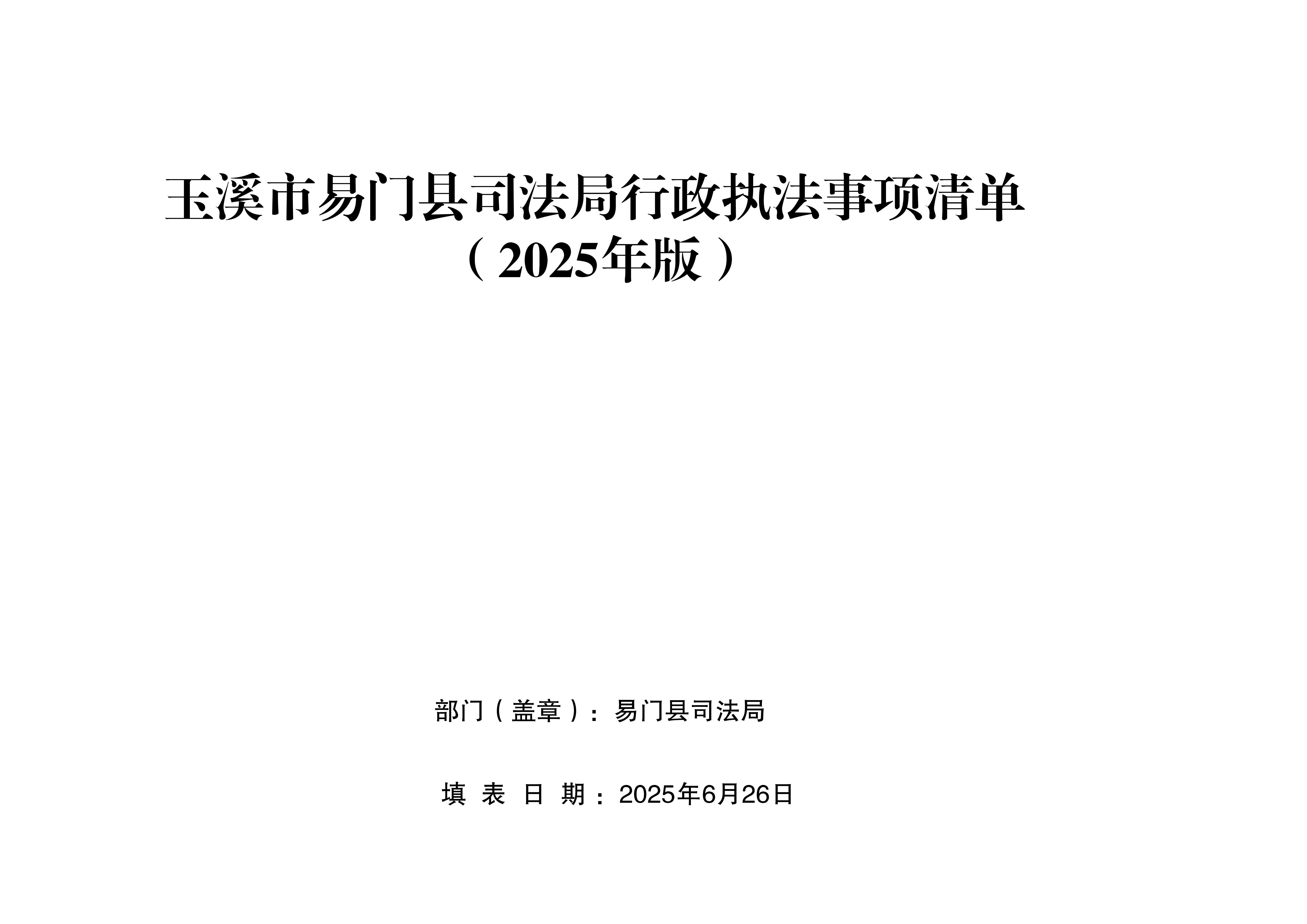 为进一步规范行政执法行为,明确执法事项,结合有关法律、法规依据的制订、修订情况及行政执法工作实际,编制了《易门县司法局行政执法事项清单(2025年版)》,本部门行政执法职权共计2类,共计38项;其中:行政检查6项,行政处罚32项,行政强制0项。现予以公布。