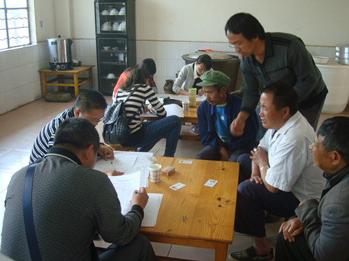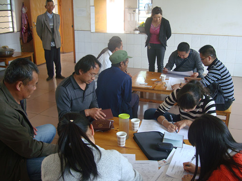 图为:县残联、县人民医院免费上门办理残疾证现场