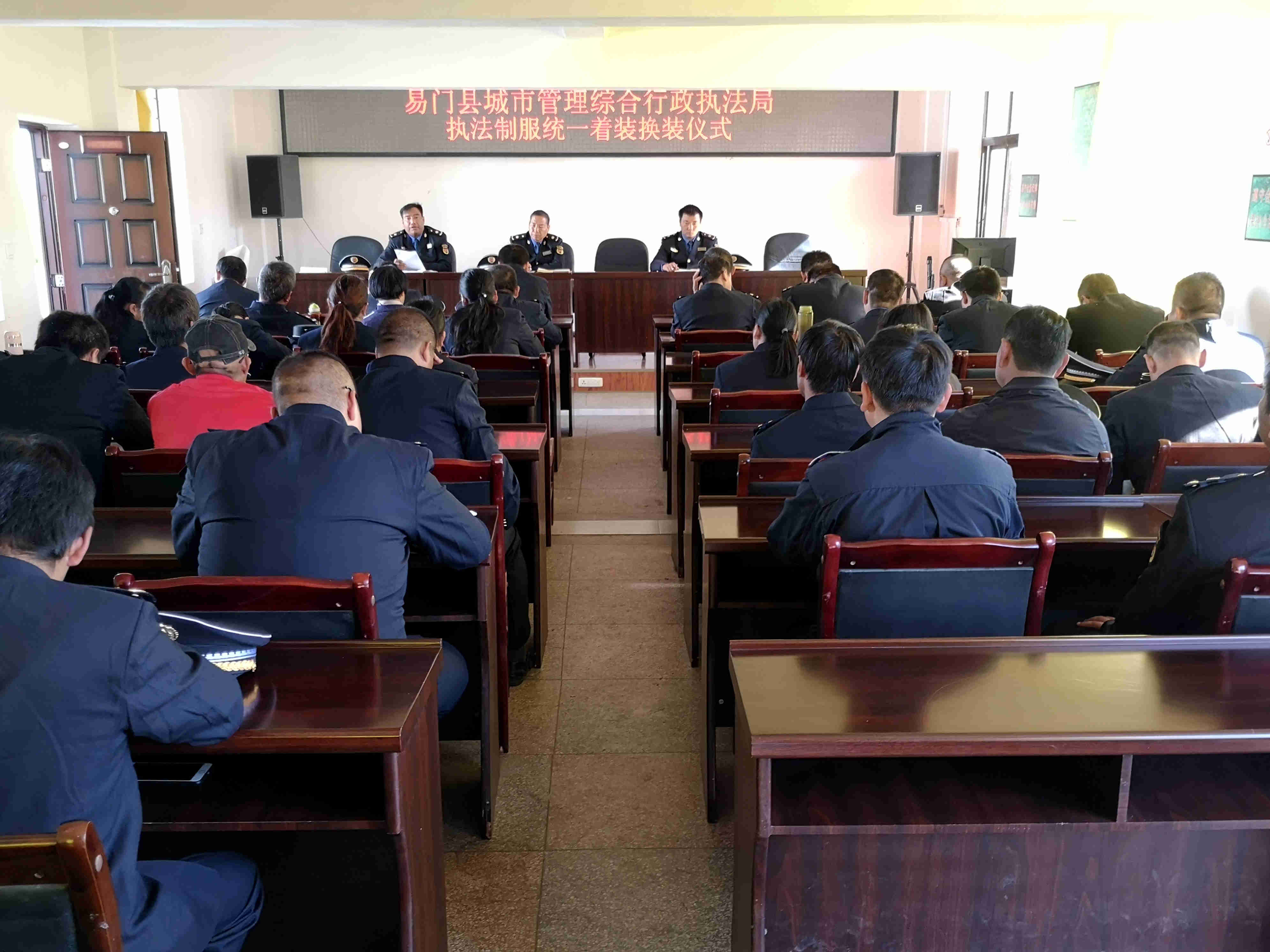 在换发新服装前,县城管综合执法局组织全体队员认真学习了《城市管理执法行为规范》(建督〔2018〕77号)、《城市管理执法制式服装和标志标识供应管理办法》(建督〔2017〕31号)及《易门县城市管理综合行政执法局城管执法制式服装和标志标识管理规定》。